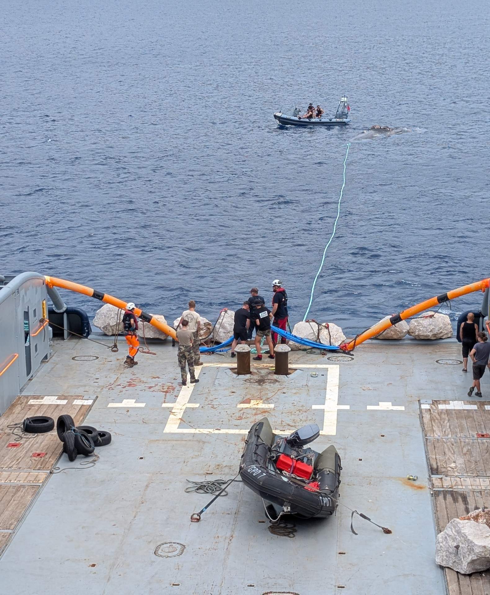 Cette intervention, menée dans le cadre du programme Immercet, avait pour objectif de lester l’animal afin qu’il puisse être immergé en toute sécurité, dans le respect du milieu marin. Une alternative écologique aux méthodes d’évacuation traditionnelles, qui permet d’éviter les risques pour la navigation tout en contribuant à la recherche scientifique et à la compréhension des écosystèmes profonds. Cette opération exceptionnelle a mis en coordination de nombreux acteurs :