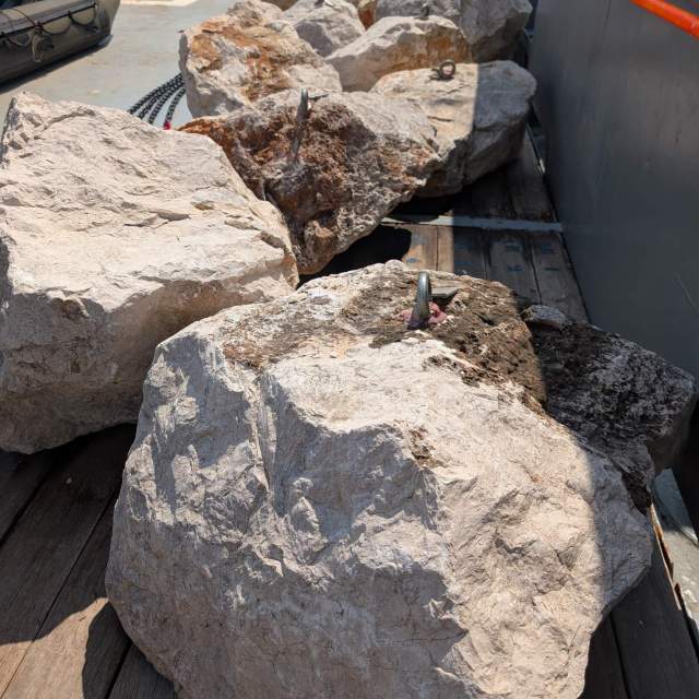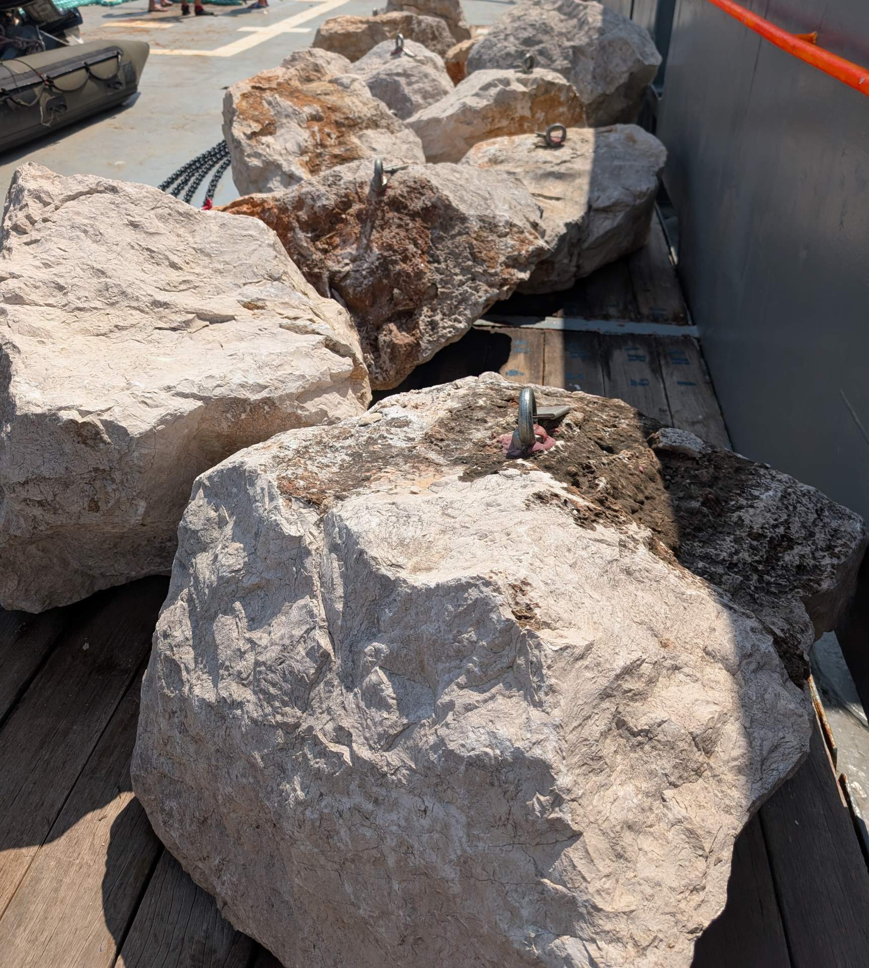 Il y a quelques mois, des enrochements issus de notre carrière du Revest ont été utilisés pour une opération pas tout à fait comme les autres : l’immersion contrôlée de la carcasse d’un cachalot au large de Calvi.